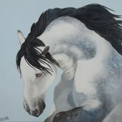 Dipinto ad olio "Cavallo frisone"