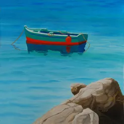 Dipinto ad olio "Barchetta verde alla fonda"