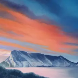 Dipinto ad olio "Alba su Tavolara"