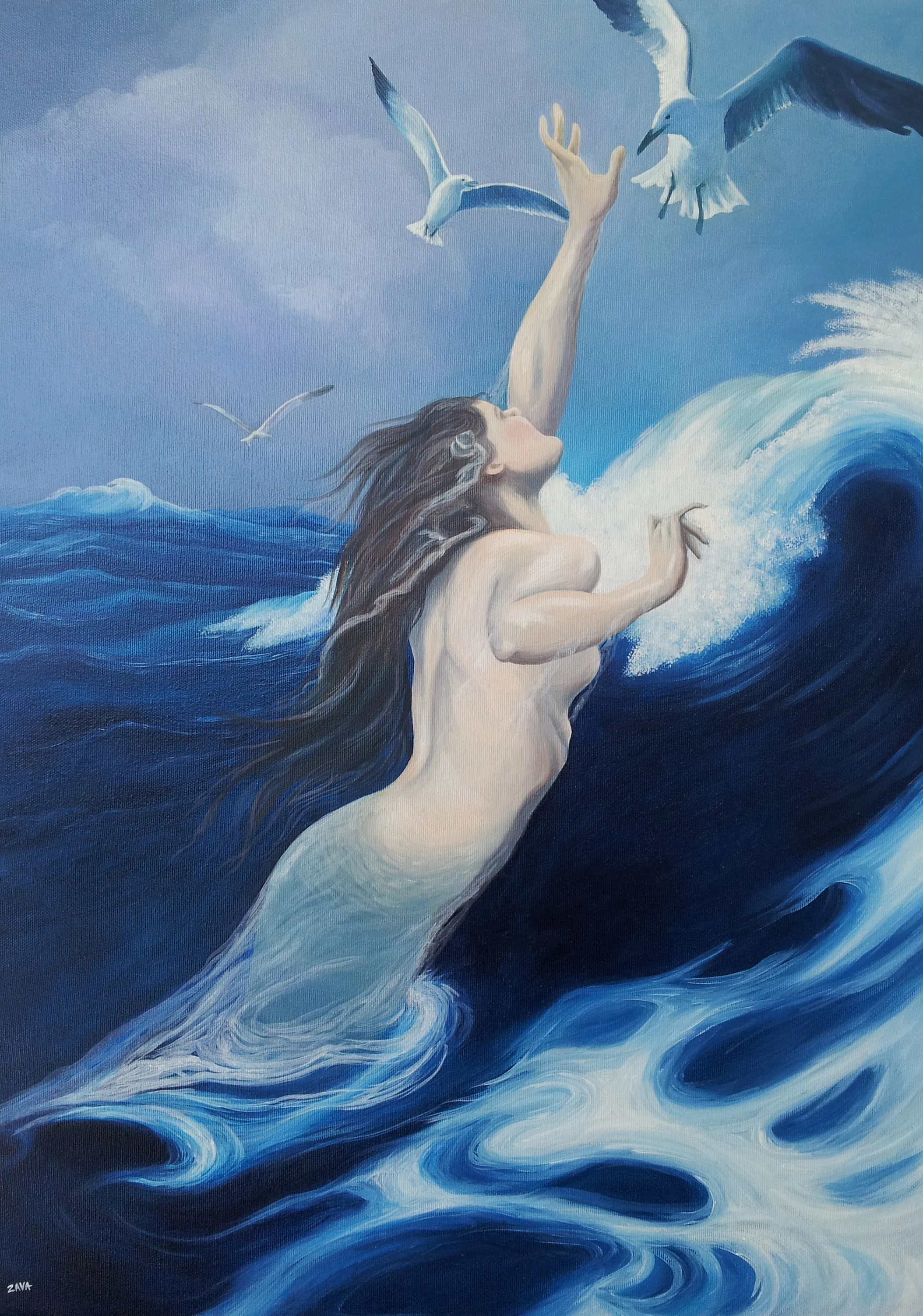 Dipinto ad olio "Sirena blu"